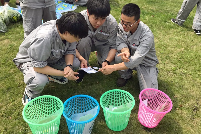 第二環(huán)節(jié)“團(tuán)建游戲”,共設(shè)置了3輪游戲:①垃圾分類游戲:讓大家對日常垃圾進(jìn)行分類,考驗(yàn)小組成員的配合與默契。大家紛紛直呼原來還有這么多不熟悉的垃圾,不能做到準(zhǔn)確分類。