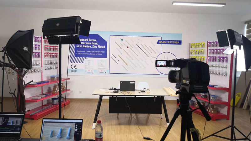 經(jīng)過(guò)商議,公司確定將五金收納部的直播間設(shè)在四樓,將緊固件直播間設(shè)置在五樓。各業(yè)務(wù)部經(jīng)理帶領(lǐng)自己部門團(tuán)隊(duì),分工協(xié)作,收集整理展品信息,準(zhǔn)備展示樣品。同時(shí),公司事業(yè)發(fā)展部也積極配合,協(xié)助開展企業(yè)視頻、產(chǎn)品視頻等拍攝工作。在搭建布置直播間時(shí),大家集思廣益,共同設(shè)計(jì)相關(guān)海報(bào),創(chuàng)意擺放各種展品,特別是緊固件部門,專門制作了趣味釘子樹,呈現(xiàn)給觀眾的展廳不亞于廣交會(huì)的現(xiàn)場(chǎng)展廳。