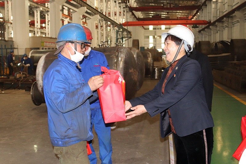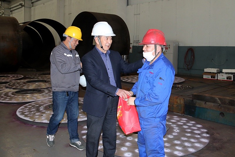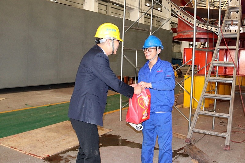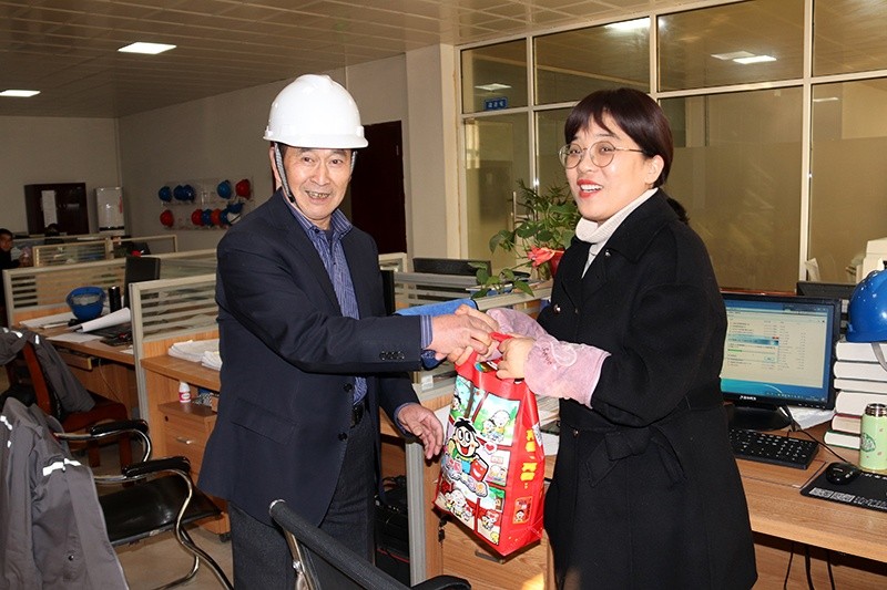 集團(tuán)工會也為外來員工們準(zhǔn)備新春小禮品,有春聯(lián)、菜包等,集團(tuán)副總湯磊、范毛毛,集團(tuán)工會主席朱亞華以及各子公司工會、領(lǐng)導(dǎo)親自來到車間,將新年禮物送到員工們的手中。