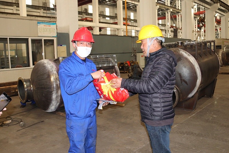 為了使外來員工度過一個安心健康又快樂的春節(jié),也為彌補(bǔ)外來員工們因疫情放棄回老家過年的小小遺憾,政府出臺了一系列留“鹽”過年優(yōu)惠政策,中達(dá)集團(tuán)也出臺了相應(yīng)激勵政策。2月7日,海鹽縣總工會、百步鎮(zhèn)總工會先后開展了送新年禮包活動,百步鎮(zhèn)鎮(zhèn)長張佳倫、黨委副書記王在根、工會副主席張陸君,親自來到中達(dá)子公司,為公司的外來員工們送上了一份份新年大禮包。