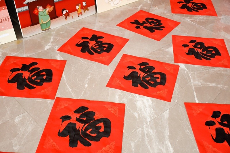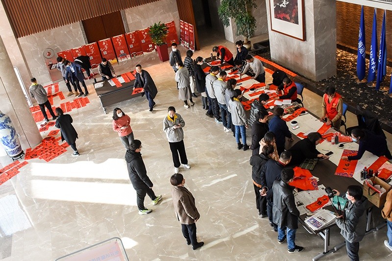 貼春聯(lián)的習(xí)俗一直延續(xù)至今,集團(tuán)工會(huì)和張?jiān)獫?jì)圖書館的本次活動(dòng),結(jié)合了“春節(jié)民俗文化”專題展覽,讓中華民族的優(yōu)秀傳統(tǒng)文化在企業(yè)中流傳?;顒?dòng)現(xiàn)場(chǎng)歡聲笑語(yǔ),充滿了喜慶的節(jié)日氣氛,隨著倒墨、鋪紙、潤(rùn)筆等準(zhǔn)備工作就緒,書法家們飽蘸濃墨,盡情揮毫,一停一頓、一起一落間,一幅幅充滿喜慶、吉祥、祝福、歡樂(lè)的春聯(lián)和福字在他們的筆下誕生,將春聯(lián)、福字送到員工手中。