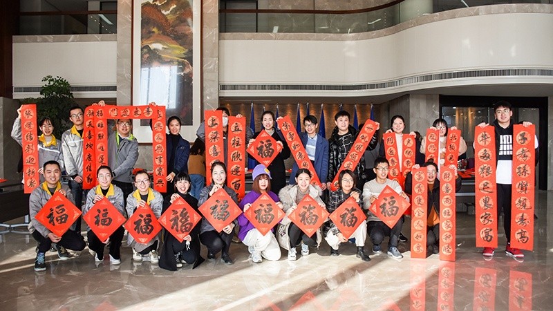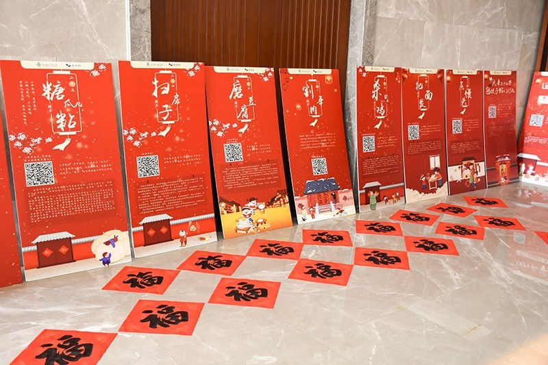 為營(yíng)造吉祥如意的春節(jié)氛圍,弘揚(yáng)向上向善的道德風(fēng)尚,把社會(huì)主義核心價(jià)值觀傳播到基層,把吉祥祝福送到千家萬(wàn)戶,集團(tuán)工會(huì)特別邀請(qǐng)了海鹽縣張?jiān)獫?jì)圖書館,聯(lián)合海鹽縣書法家協(xié)會(huì)來(lái)到中達(dá)集團(tuán)現(xiàn)場(chǎng),為中達(dá)員工們寫春聯(lián)、福字。與此同時(shí),張?jiān)獫?jì)圖書館還將圖書館數(shù)字資源推廣服務(wù)一并帶入企業(yè),在集團(tuán)大廳陳列了“春節(jié)民俗展”,將春節(jié)的喜慶和書香氣息一并送到員工身邊。