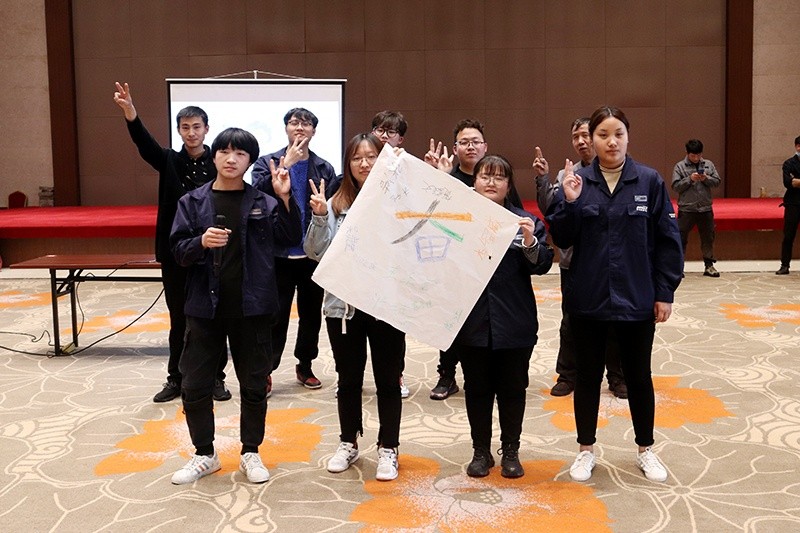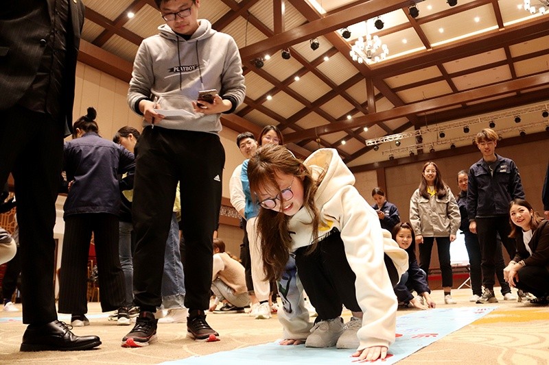 隨后,80位新員工移步中達(dá)宴會廳,在人力資源部主任吳雪艷的帶領(lǐng)下,通過破冰小游戲組成了8支隊(duì)伍。