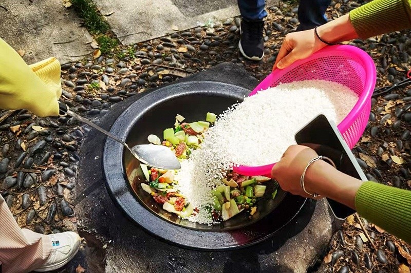 爬山結(jié)束,在山腳下的集合地,負責后勤的同事們早已為大家準備好了香噴噴熱乎乎的野米飯以及各種水果、零食,貼心滿滿。