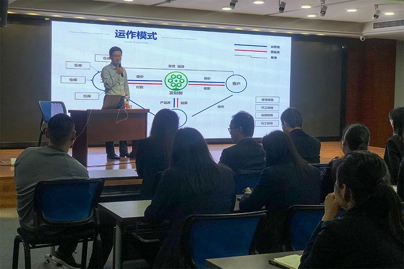 會上,集團信息部主任王建龍向大家進(jìn)行了背景闡述,使大家對“發(fā)財樹”平臺項目的來源和項目啟動的必要性有了一定了解?!鞍l(fā)財樹”寓意事業(yè)蒸蒸日上,業(yè)績越來越好,是集團、公司領(lǐng)導(dǎo)對中達(dá)國際的殷切期望。王建龍還講解了平臺的運作模式,引領(lǐng)大家對“工廠、公司、客戶、系統(tǒng)”四者之間相互流轉(zhuǎn)內(nèi)的過程進(jìn)行了解。