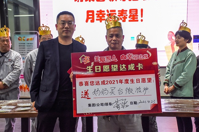 4月23日,首次輪值活動由恒洋熱電團支部組織發(fā)動,各兄弟單位團支部選派兩位團員代表參加。上午10點,在集團團委書記董飛的帶領(lǐng)下,全體團員代表參加了恒洋熱電4月集體生日會,通過禮品套圈、唱生日歌、切蛋糕、做雪媚娘、吃長壽面等互動環(huán)節(jié),讓全體團員代表深刻感受到了恒洋熱電“家文化”的魅力和溫馨。集團團委書記董飛還為4月生日壽星抽取了生日愿望,來自安環(huán)部的陳福根成為幸運兒,實現(xiàn)了為母親上送一臺微波爐的生日心愿。