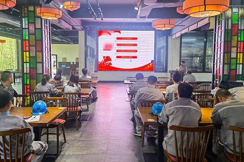 本次支部大會還有一個特別有意義的流程,公司黨員胡赟燕同志與大家分享了一堂《中國共產(chǎn)黨——百年恰是風華正茂》的黨史課,她給大家講述了中國共產(chǎn)黨的百年歷史和槳聲燈影里的沈蕩,用沈蕩的縮影展示了在黨領(lǐng)導下的時代的變化,人民生活水平的提升。同時,她還講解了朱聚生烈士的事跡。