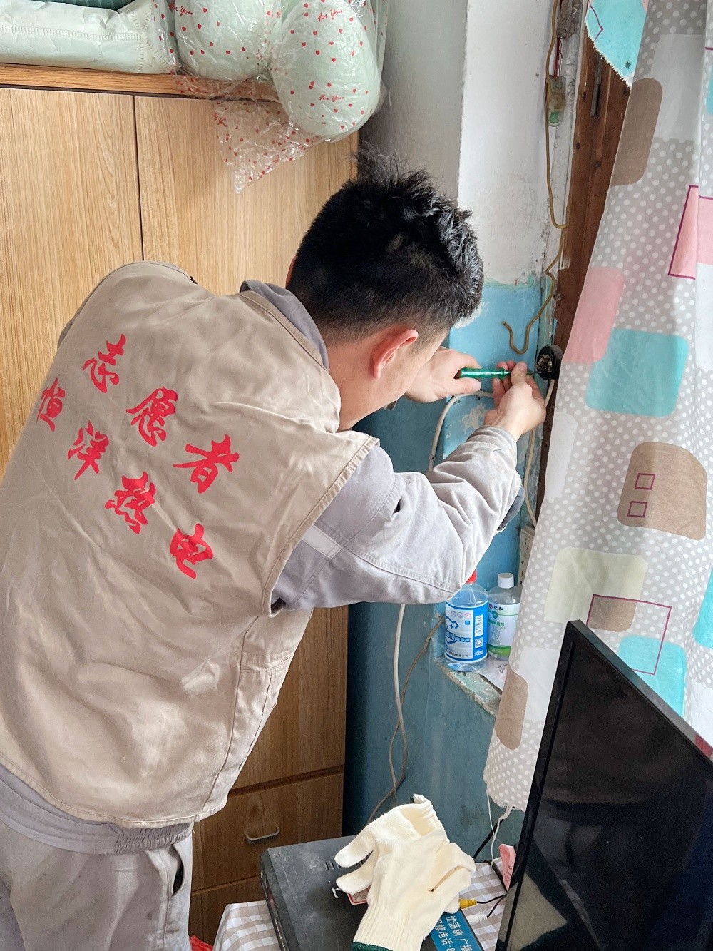 在現(xiàn)場,志愿者們熟練地更換老舊線路,修理更換存在隱患的開關和長期不亮的電燈,把裸露在外的電線用絕緣膠包裹好,維修松動的電源閘盒,竭盡所能為大家修復安全用電。
