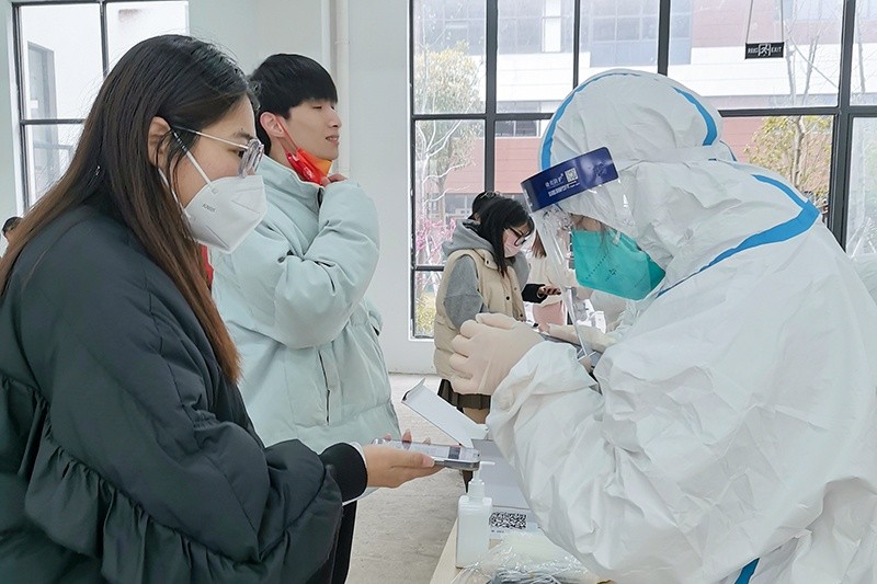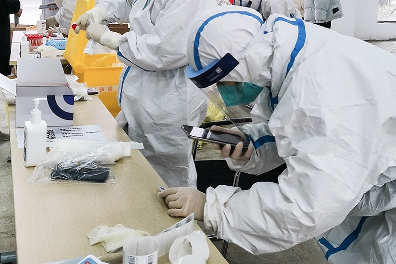 志愿者們?cè)诤怂釞z測(cè)現(xiàn)場(chǎng)進(jìn)行秩序引導(dǎo)、協(xié)助登記等協(xié)助工作。有的為不會(huì)使用微信小程序掃碼登記的居民提供指導(dǎo)幫助,有的配合醫(yī)生護(hù)士做好掃碼人員登記,有的協(xié)助特殊人群采樣等等。一米線、隔離帶、測(cè)體溫、查雙碼、信息登記,從入口到出口志愿者們幫助居民安排得井然有序,保證了各卡點(diǎn)檢測(cè)工作高效進(jìn)行。志愿者們紛紛表示,“雖然我們不是醫(yī)生、護(hù)士,但我們應(yīng)該盡自己的綿薄之力,和大家一起打贏這場(chǎng)疫情防控戰(zhàn)!”