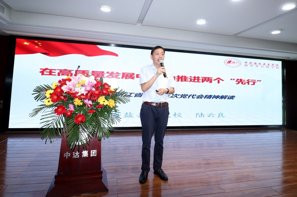 海鹽縣委黨校常務副校長陸云良應邀來到活動現(xiàn)場,為與會黨員們宣講浙江省第十五次黨代會精神。