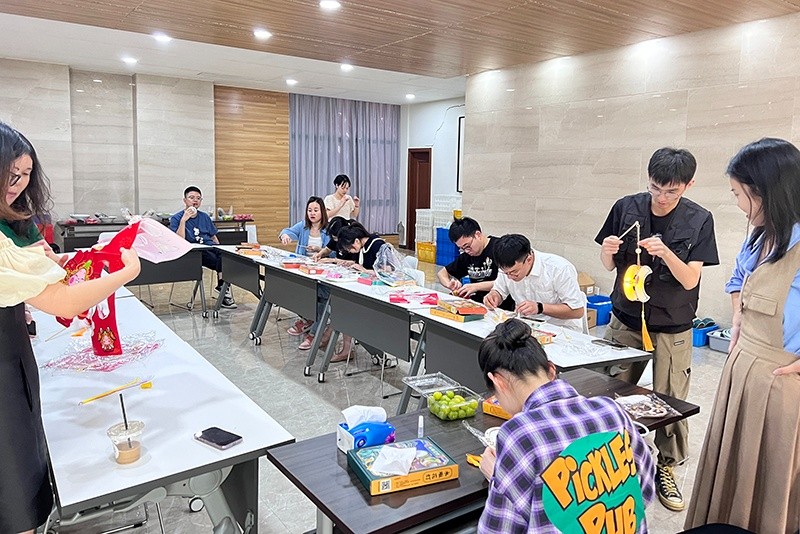 另外,中達(dá)國際生活委員會準(zhǔn)備了DIY花燈的制作材料,大家積極參與,通過視頻講解拼裝花燈的注意事項(xiàng)和具體步驟,紛紛上手制作花燈,制作的同時(shí)還不忘互相交流技巧,互幫互助的方式讓復(fù)雜的花燈制作流程變得簡單起來,些許時(shí)間,一盞盞花燈便悄然出現(xiàn)。