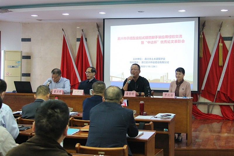 會議宣貫了《嘉興市建設局關于印發(fā)嘉興市建設工程承插型盤扣式鋼管腳手架施工安全實施細則的通知》,隨后進行專業(yè)技術交流活動。