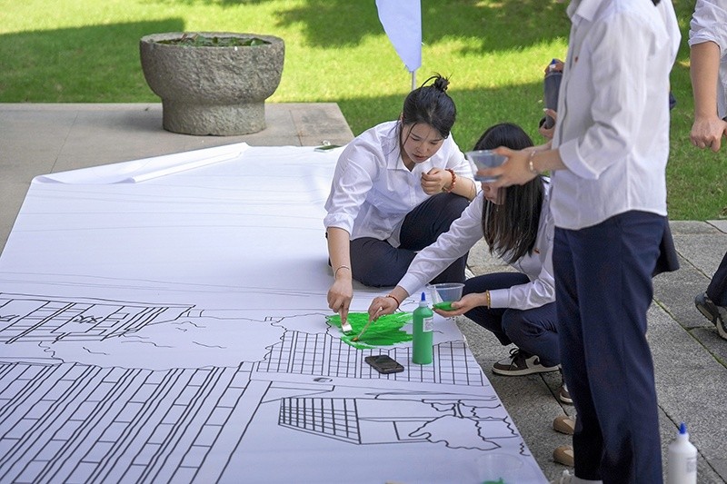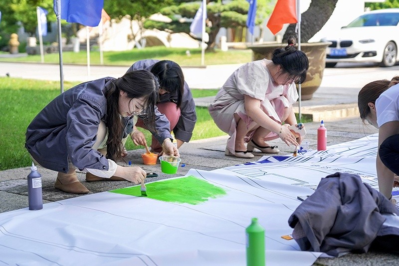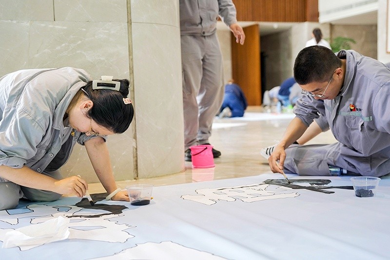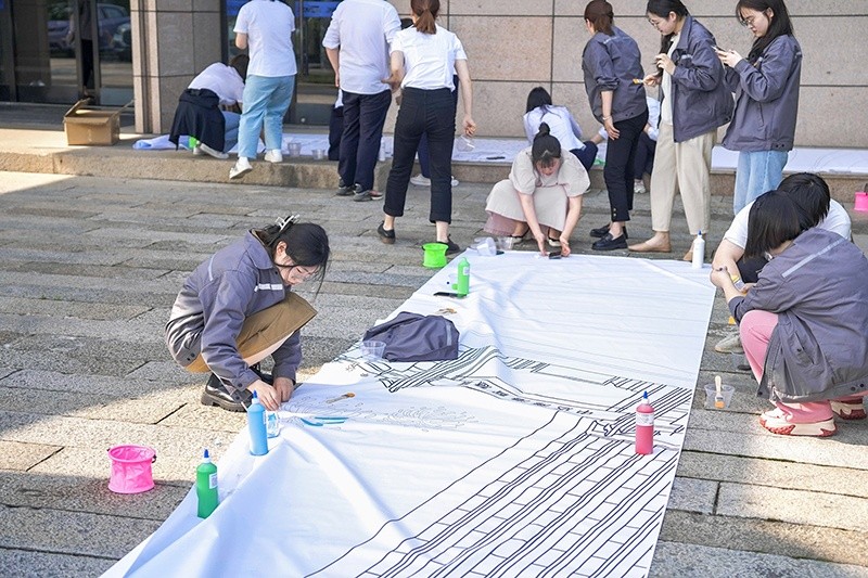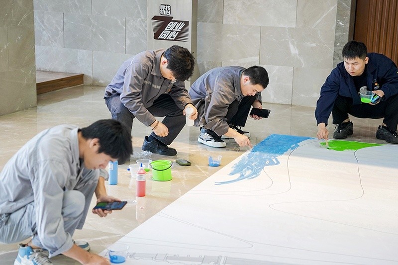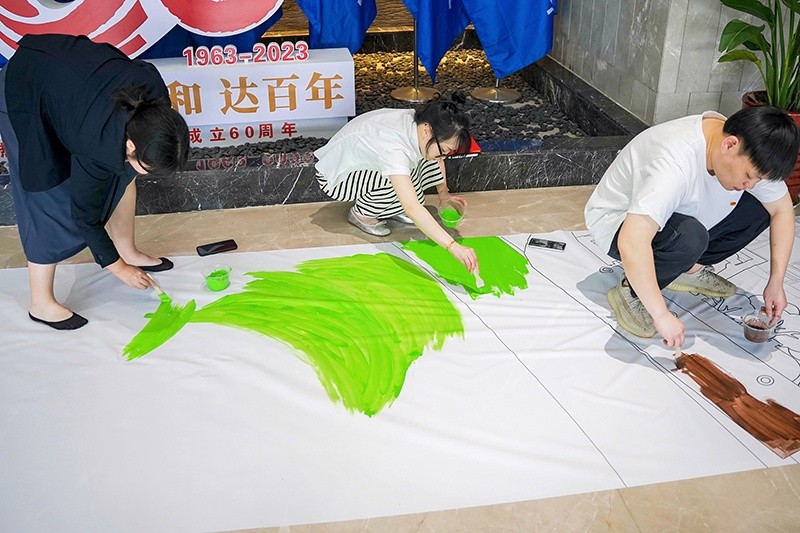 隨后,“擘畫(huà)藍(lán)圖啟征程,乘風(fēng)破浪開(kāi)新局”共繪納斯卡巨畫(huà)活動(dòng)閃亮登場(chǎng),大家通過(guò)分組合作的形式,共同在畫(huà)布上繪制。所有團(tuán)隊(duì)要用僅有的畫(huà)筆和顏料,揮灑藝術(shù)才能,巨畫(huà)被分成8條,各部分由不同的團(tuán)隊(duì)負(fù)責(zé)完成,最終完成畫(huà)布拼接并進(jìn)行展示。正值公司60周年,集團(tuán)團(tuán)委特舉辦此項(xiàng)活動(dòng),一方面是為了讓平時(shí)辛勤工作的青年員工廣泛交友、放松自我,更重要的是通過(guò)團(tuán)建活動(dòng)進(jìn)一步增強(qiáng)青年們的合作、溝通與協(xié)調(diào)能力,增強(qiáng)團(tuán)隊(duì)的凝聚力和向心力。