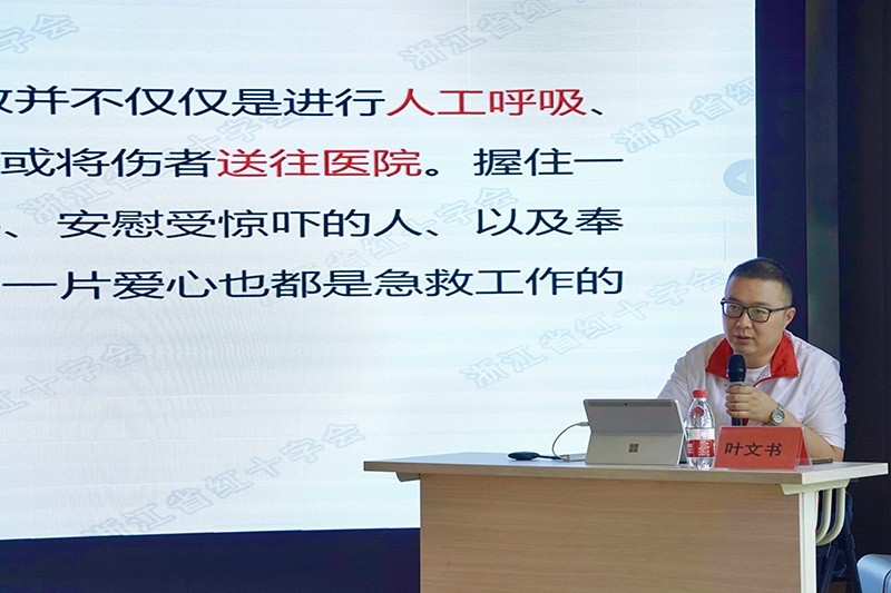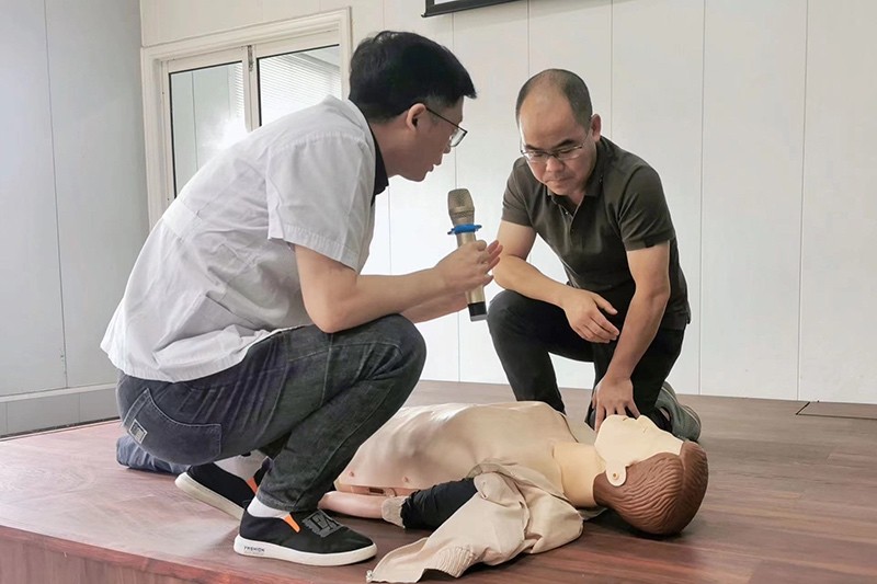 其次,海鹽縣康寧醫(yī)院葉文書醫(yī)生為大家?guī)硪惶镁实膽?yīng)急培訓(xùn)課,通過講解和現(xiàn)場(chǎng)示范,參加培訓(xùn)的員工對(duì)急救技能有了基本的了解,也認(rèn)識(shí)到“人人會(huì)應(yīng)急”的意義:提高生命安全意識(shí)、提高應(yīng)急反應(yīng)速度、提高自救互救能力。