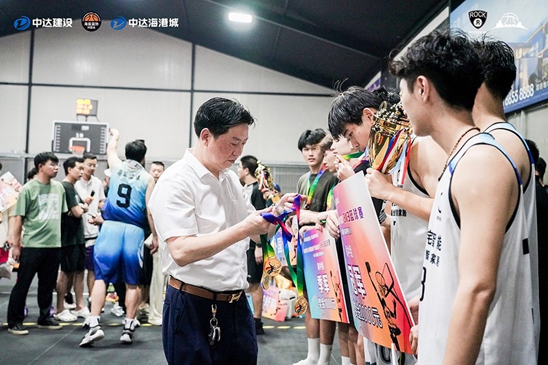 頒獎典禮上,中達建設(shè)總經(jīng)理肖國生為獲獎隊伍頒獎,肖總表示,生命在于運動,生命需要運動,運動是生命的源泉。歷時17天共計160場比賽,中達建設(shè)贊助本次籃球賽事旨在鼓勵全民健身,傳揚奮進、拼搏、團結(jié)的運動精神,同時也為即將到來的亞運會做好熱身,廣泛營造全民迎亞運的濃厚氛圍。