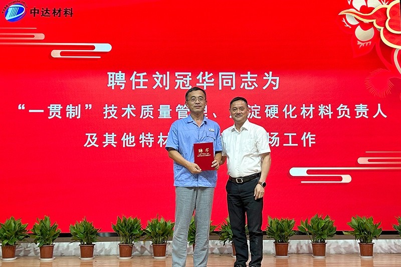 會(huì)議第三項(xiàng),舉行“一貫制”質(zhì)量管理項(xiàng)目啟動(dòng)儀式。聘任材料專家劉冠華為“一貫制”質(zhì)量管理、沉淀硬化材料負(fù)責(zé)人。中達(dá)材料要以工藝、技術(shù)規(guī)范“一貫制”為抓手;以培養(yǎng)員工習(xí)慣養(yǎng)成和行為規(guī)范為目的;在現(xiàn)有體制下,不斷提高質(zhì)量管理水平,向管理要質(zhì)量、出效益。