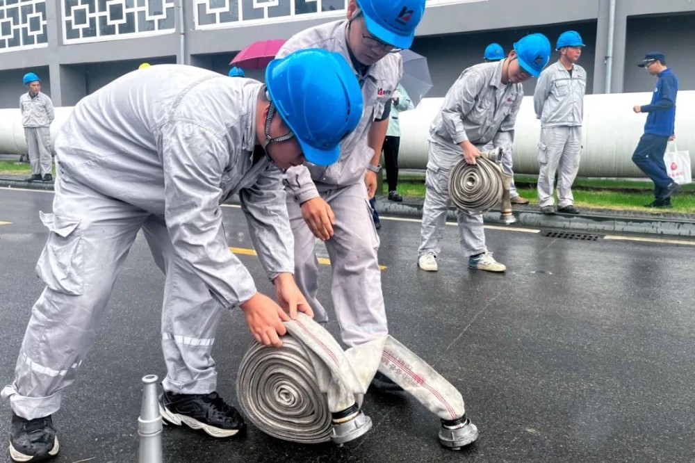 此次比賽共有三個(gè)團(tuán)隊(duì),分別是行政隊(duì)、技術(shù)檢修隊(duì)、生產(chǎn)隊(duì)。項(xiàng)目共兩項(xiàng),第一項(xiàng)進(jìn)行的是2人組60米滅火,兩人分別使用干粉滅火器、滅火毯滅火;第二項(xiàng)進(jìn)行的是4人組二盤水帶連接出水消防滅火基本科目演練。在整個(gè)消防演練過程中,每位員工情緒飽滿、積極參與、揮汗奔跑,有序完成了一項(xiàng)又一項(xiàng)的滅火任務(wù)。最終,技術(shù)檢修隊(duì)綜合所用時(shí)間最短,獲得了本次比賽的第一名。